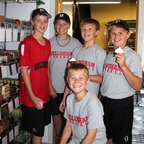 My wonderful Bramble Berry team told me that I had to be back in the office by 2:30 last Wednesday. What the heck did they have up their sleeves? I had no idea at the time but I played along and planned my workout around meetings and was back to the office right on time. To my surprise, I was honored with a guest appearance from the Bellingham All-Stars 11U baseball team, AKA the Cal Ripken State Champs! Great job boys!Â