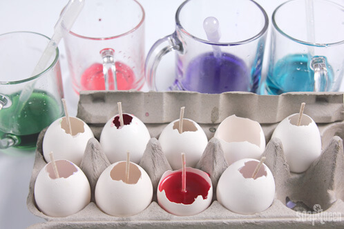 Allow the wax to dry for about 2 – 3 hours, and then chip away at the outer shell to reveal the candle inside. Your egg candles are ready to burn!
