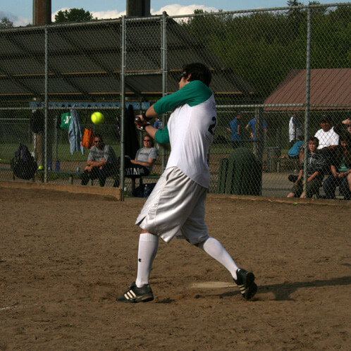 On a rare quasi-sunny and definitely not rainy day, the Sluggers headed out to the Frank Geri Fields to play against the Bellingham Hooligans. Great teamwork and sportsmanship was exhibited by the Sluggers (I would expect nothing less!) as they played a heartfelt game of softball.