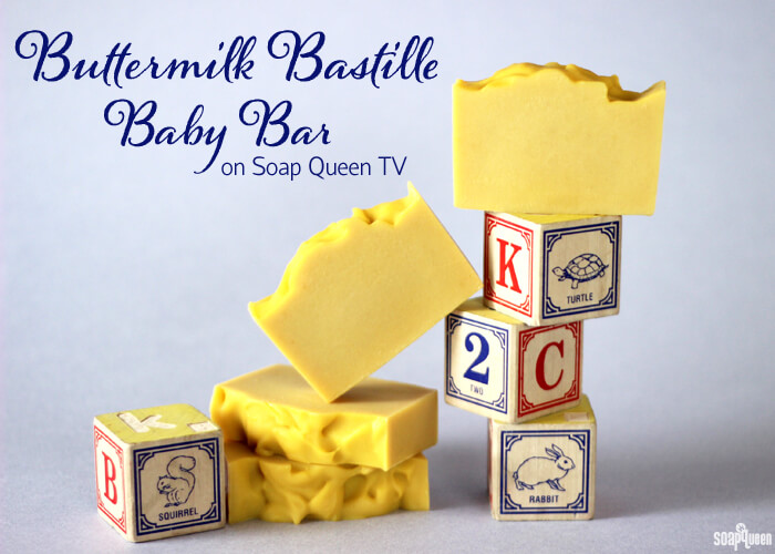 In addition to a silky feeling, soap made with milk is also gentle on sensitive skin. The Buttermilk Bastille Baby Bar video on Soap Queen TV is made with skin-loving olive oil and buttermilk. The soap recipe, shared by Amanda from Lovin Soap, gets its yellow color from carrot puree. It’s ideal for babies or young children.