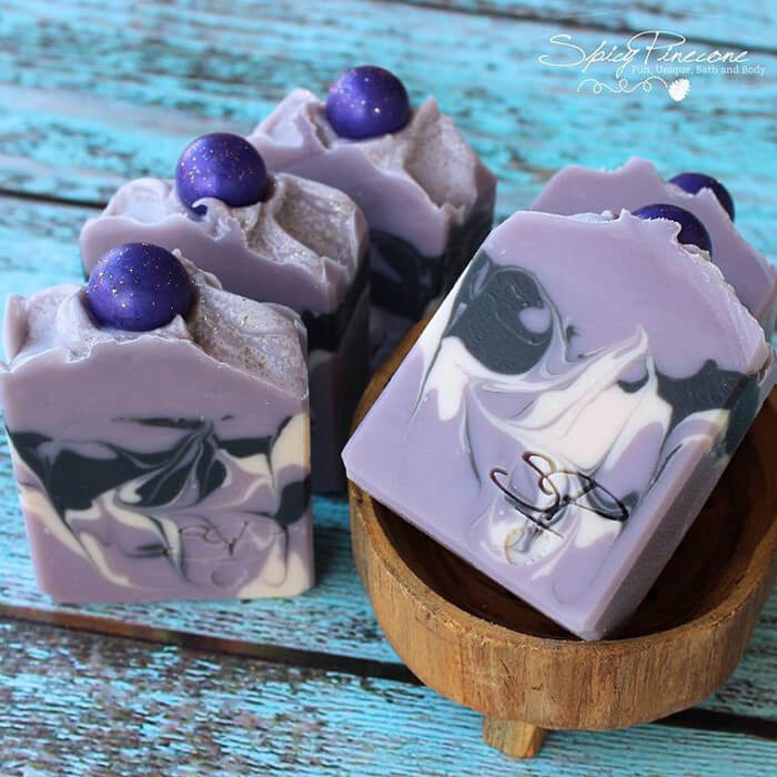 This week’s Instagram Photo of the Week by Sarah with Spicy Pinecone is full of beautiful color as well. Her cold process soap is made with coconut milk and several butters for a luxurious feeling. The soft purple color looks great against the white and black swirl and is oh-so-spring-season. Find more beautiful soaps on her Instagram page.