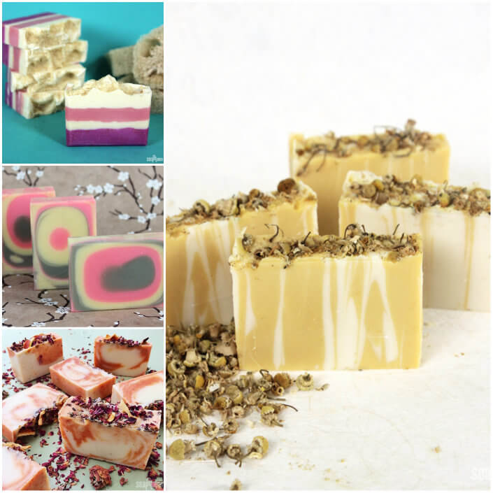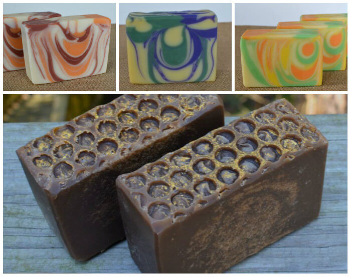Above (clockwise, top left) are Molly’s Blood Orange and Goji Berry Soap, Jasmine Vanilla Soap, Citrus Zest and Mango Butter Soap and Goat Milk and Honey Soap. If you’d like to make a soap with the sweet scent of honey, click through the Honey Bee Soap Tutorial. For a honey-scented melt and pour project, check out the Save the Honey Bee Melt and Pour Tutorial.