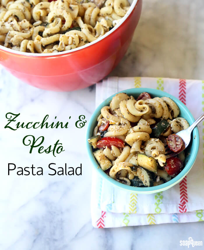 Once you learn the basics of melt and pour swirling, it is easy to do. For another easy (edible) recipe, you’ll love the Zucchini and Pesto Pasta Salad. It is made with tomatoes, pine nuts, feta cheese and zucchini. Store-bought pesto is added for a delicious herby flavor. It’s the perfect (and fast) dish to bring to a summer get together.