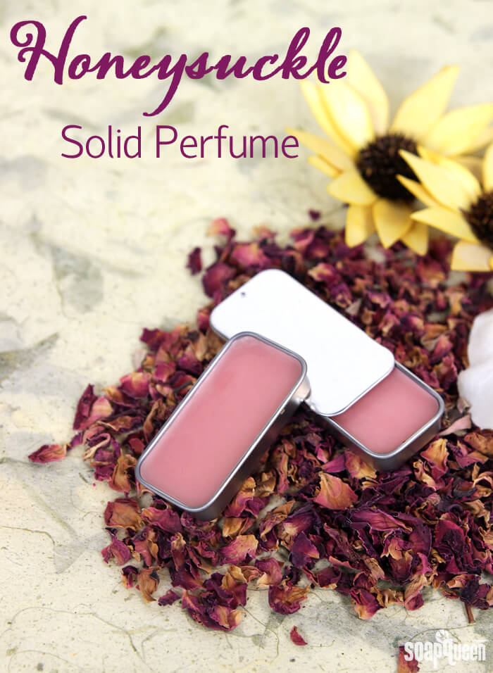 Continuing the simple theme is the Honeysuckle Solid Perfume Tutorial. The Solid Perfume Base is scented with Heavenly Honeysuckle Fragrance Oil, which is August’s Sample of the Month. The fragrance, inspired by Kim Kardashian’s Signature Purple Perfume, has notes of cherry, jasmine, sandalwood and musk. A little bit of Rose Gold Mica complements the floral smell.