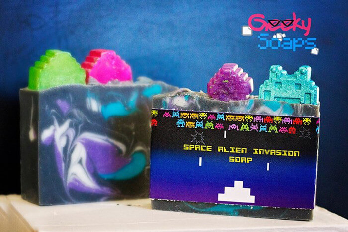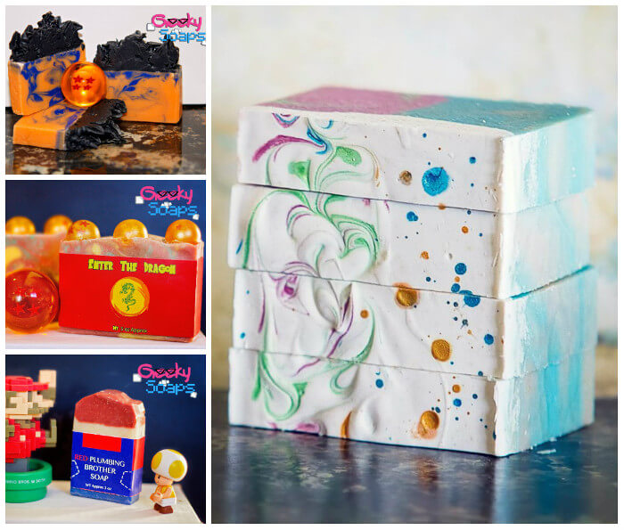 This week’s Facebook Photo of the Week by Tabitha with Geeky Soaps has plenty of vibrant color. Her soap is inspired by her husband’s love of games and anime.