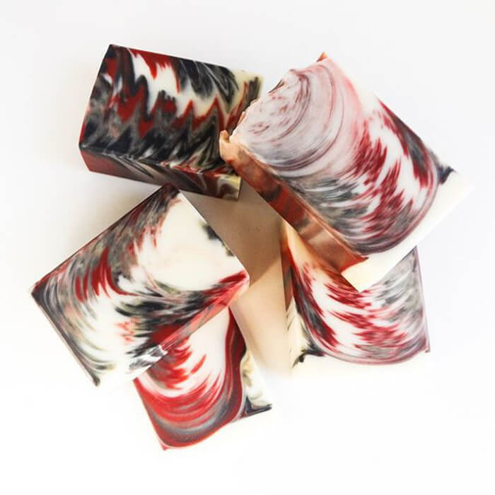 For more beautiful swirls, you’ll love this week’s Instagram Photo of the Week by Jelena with Soap Techniques. Her feathered in-the-pot swirl soap is so stunning and unique. I love the contrast of the black, white and red soap. For more fantastic soap, check out Jelena’s Instagram page.
