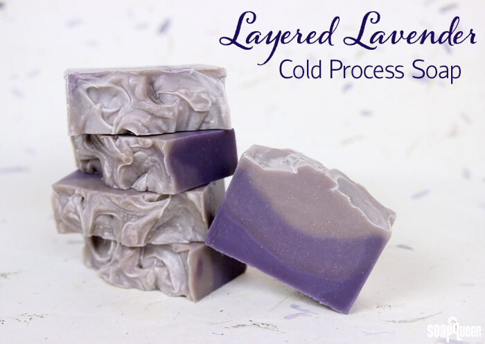 For the Layered Lavender Cold Process Tutorial, the 10″ Silicone Loaf Mold was used to create professional-looking bars. Periwinkle High pH LabColor gives the soap a purple ombre effect. When the color is added to the fresh soap, it morphs into a grayish color. Once the soap goes through gel phase, the color turns a rich purple hue. For an earthy and floral scent, Lavender & Cedar Fragrance Oil is added.