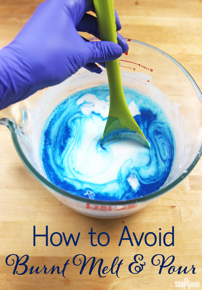Melt and pour soap is fun to customize with your favorite colors. If melt and pour burns, it can be difficult to incorporate color and fragrance. That’s because it can become gloppy or discolored. To prevent burning, make sure to melt your soap in the microwave on short bursts and stir frequently. Learn more in the How to Avoid Burnt Melt and Pour post.
