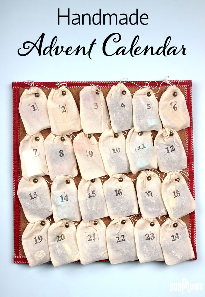 Colorful soaps make amazing holiday gifts. They are also perfect to put in the Easy Handmade Advent Calendar. The calendar is super easy to make. To get the look, you can attach muslin bags to a cork board decorated with ribbon. Opening the different bags every day really builds excitement for Christmas day. Bonus, kids love advent calendars!