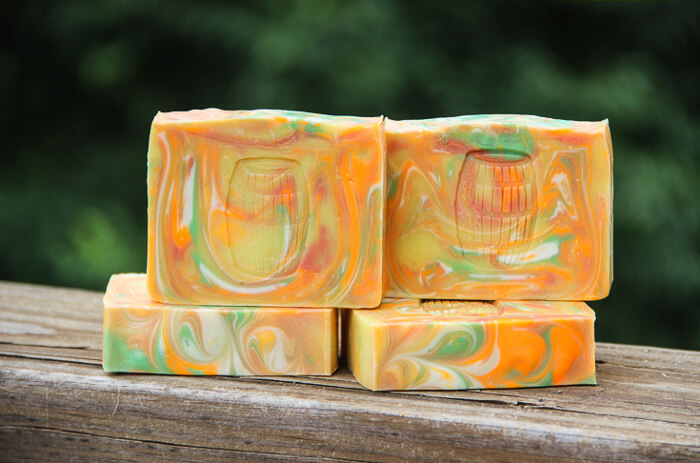 Lauren with Single Barrel Soaps makes bars that are polished, creative and beautiful. They are also instantly recognizable because of the barrel stamp. Lauren added that stamp so people would know they were her creations, even without a label. She recommends creating a cohesive look for your products so they will stand out. Learn more about Lauren’s journey and see her amazing work in the Interview with Lauren of Single Barrel Soaps.