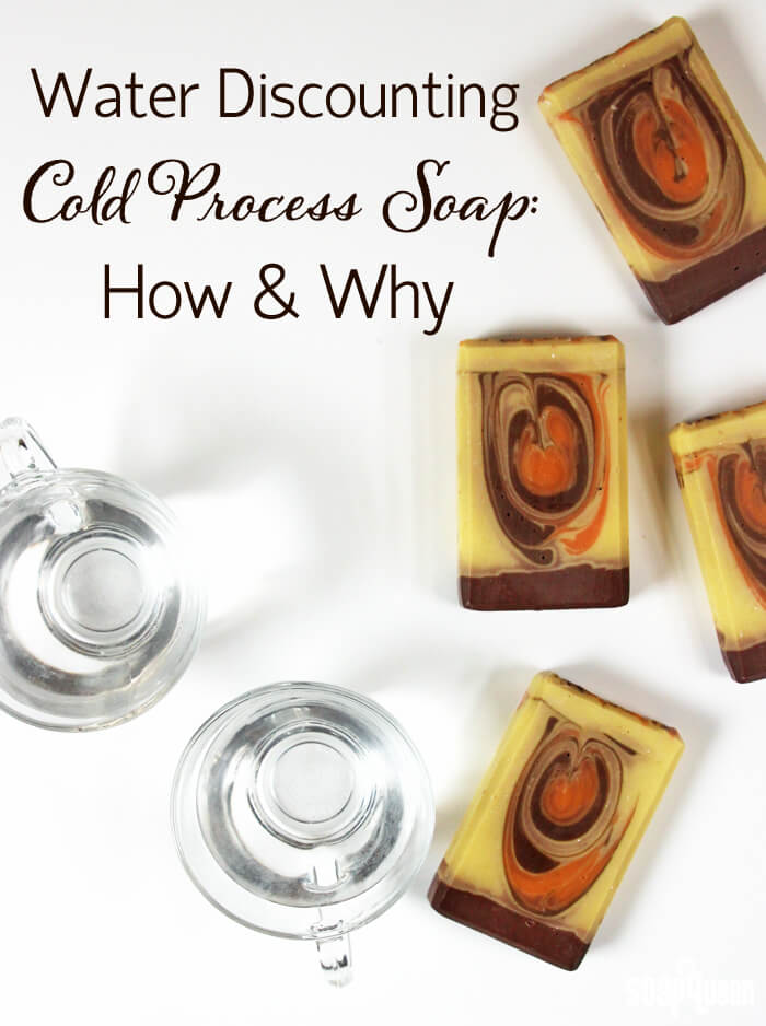 If you love cold process soapmaking but don’t love the waiting, you can try water discounting. Discounting, or using less water than the recipe calls for, helps your soap unmold and cure more quickly. It can also help prevent soda ash and glycerin rivers. However, water discounted soap does thicken more quickly. Click through the Water Discounting Cold Process Soap: How and Why post to learn how to give the technique a try.