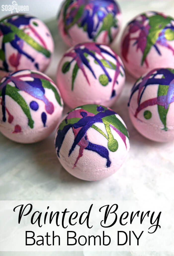 This week featured several tutorials inspired by the new Spring Fever Fragrance Collection. The collection includes Blooms and Berries Fragrance Oil, which has notes of strawberry, pear, jasmine and musk. To complement the scent, the Painted Berry Bath Bombs have a green, purple and pink design on top. The design is created by mixing mica with 99% isopropyl alcohol and “painting” on top of each one. It’s a fun way to dress up bath bombs.