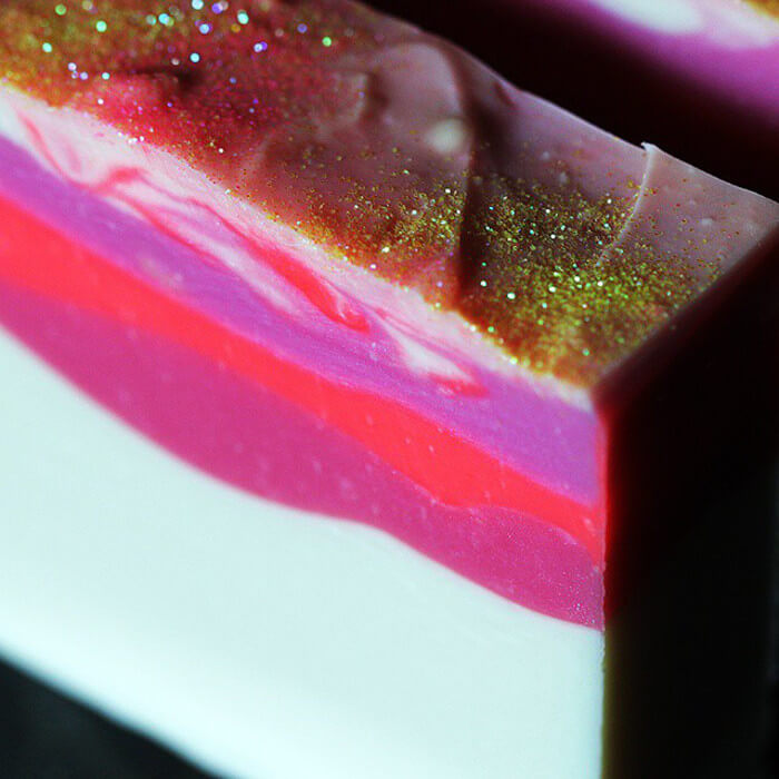 The embellishments on the bath fizzy cupcakes look great. This week’s Instagram Photo of the Week by Veronica of Veronica Foale Essentials has a little bit of sparkle on top of her layered soap. The glitter and warm colors are a cheerful and beautiful combination. Check out more soapy pictures on her Instagram page.