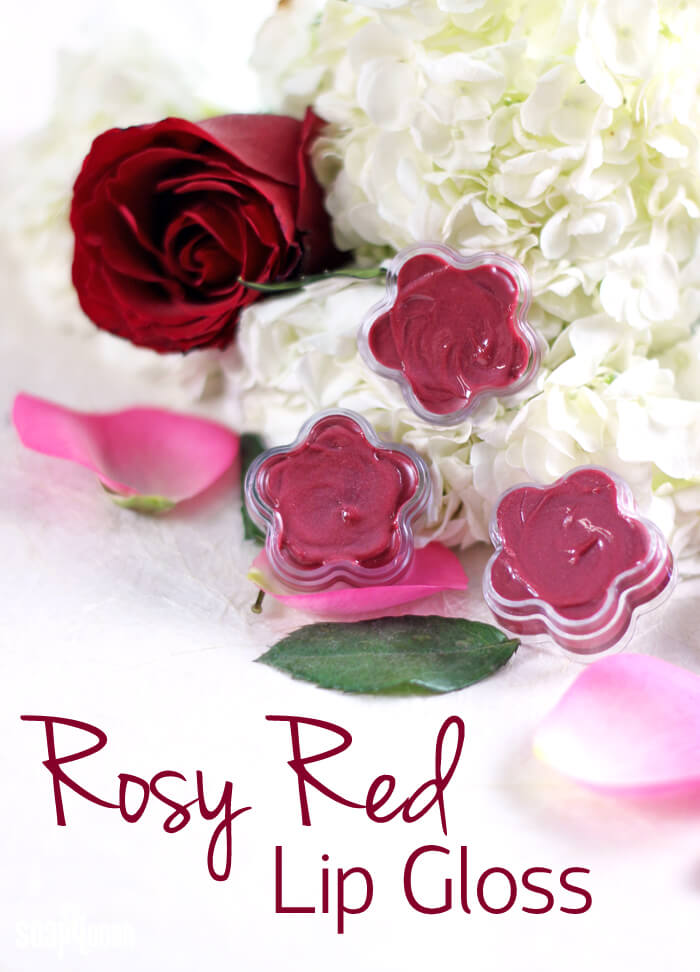 Flowers were the inspiration for the Rosy Red Lip Gloss. A combination of castor oil, jojoba oil and cera bellina wax make the gloss shiny, soft and spreadable. The rosy hue comes from Merlot Sparkle Mica and Rose Pearl Mica, and Passionfruit Rose Fragrance and Flavor Oil adds the floral and sweet smell.
