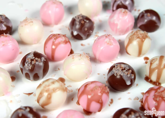 The Melt and Pour Soap Truffles are another sweet treat. They’re scented with Butter Mints Fragrance Oil and topped with a melt and pour soap drizzle and Medium Pink Sea Salt. It’s an ideal project to make with friends because they can help you decorate the top of the truffles. Find more projects to make with loved ones in this post.