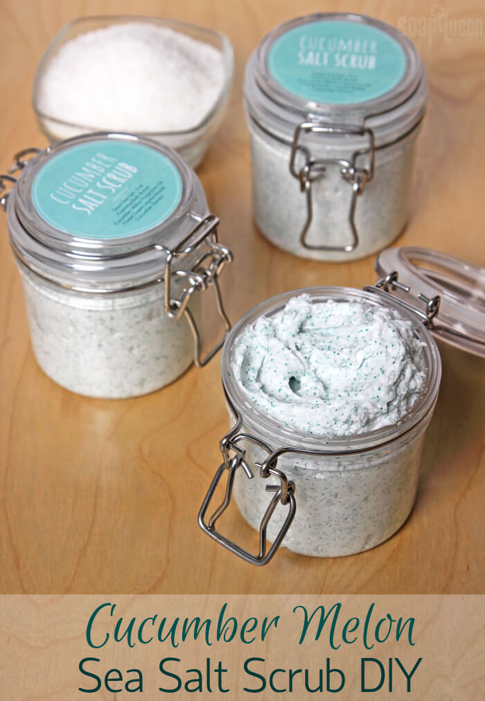 Cucumber Melon Fragrance Oil also smells great in this Sea Salt Scrub. It has a fluffy texture because it’s made with Foaming Bath Butter. It also has Fine Grained Dead Sea Salt and Forest Green Jojoba Beads, which exfoliate and leave your skin feeling fresh and clean. The jojoba beads also give the scrub a lovely pop of green.