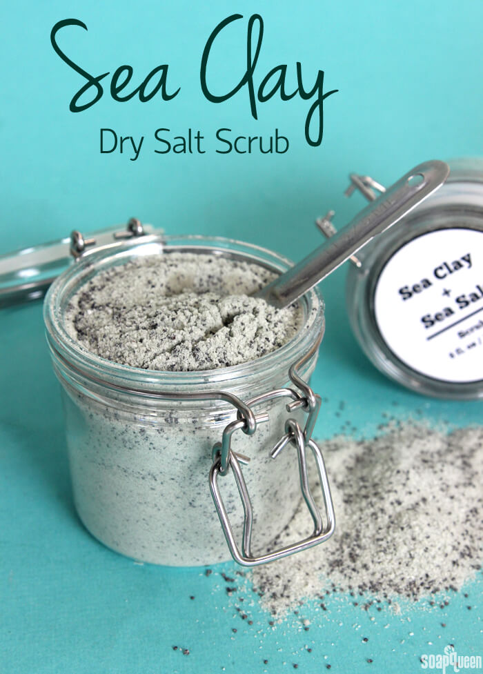 Clay is also a natural and gentle exfoliant. The Sea Clay Dry Salt Scrub combines sea clay, baking soda, extra fine Epsom salt, fine grained dead sea salt and poppy seeds for an extra exfoliating scrub. The sea clay also adds a grayish green color with a bit of shimmer thanks to Aqua Pearl Mica, while Sea Moss Fragrance Oil adds a fresh and earthy scent.