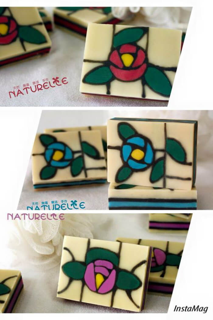 Wow! I love that stained glass window look! Gorgeous soaps, Yvonne.