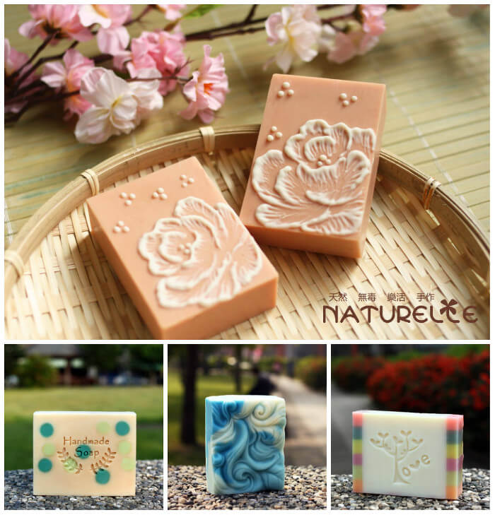 Above (top, clockwise) are Yvonne’s flower soap, rainbow soap, blue and white soap and spotted soap. If you’d like circular accents in your soap, click through the Crisp Anjou Pear Embed Tutorial. Using a heart shaped cutter creates fun Valentine’s Day embeds in the Embedded Heart Melt and Pour Tutorial.