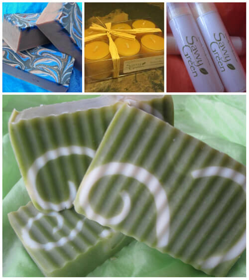 Shown above (top, clockwise) is Savvy Green’s Midnight Swirl Shampoo/Shave Bar, Natural Beeswax Candles, Luscious Lip Balm, and Krazy Kale Bar Soap. If you want to make a shampoo bar with lots of bubbles, check out this Sudsy Shampoo Bars Tutorial. If you want to make your own luscious lip balm, you may like this How to Make Infused Lip Balm on Soap Queen TV Tutorial.