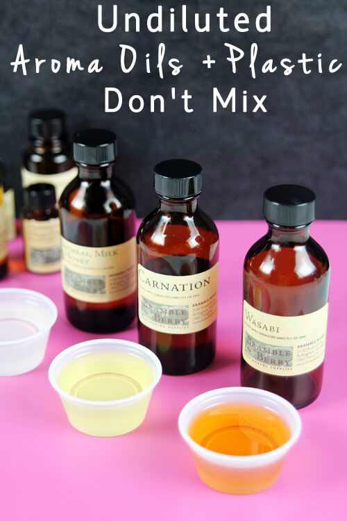 Even if the soaping station is set up perfectly, spills can still happen. If you happen to spill undiluted fragrance or essential oil it is important to clean them up right away because they can stain surfaces, as seen in this Undiluted Aroma Oils and Plastic Don’t Mix post. They can also deteriorate plastic containers or molds, which is why they should be stored in glass containers for long periods of time.