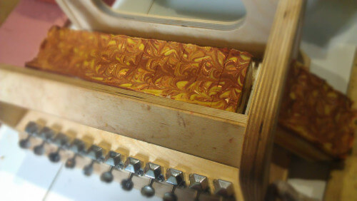 This soap has extra flair with a swirl of yellow and orange colors. If you want to achieve a similar look, check out the In-the-Pot Swirling tutorial for cold process soap. To get beautiful swirls in melt and pour soap, the Faux Swirl Melt and Pour Cubes tutorial shows you how.
