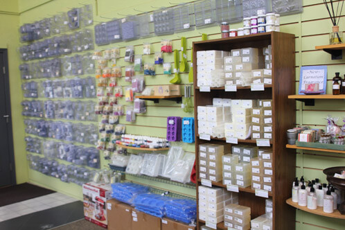 A wall of melt and pour & molds.