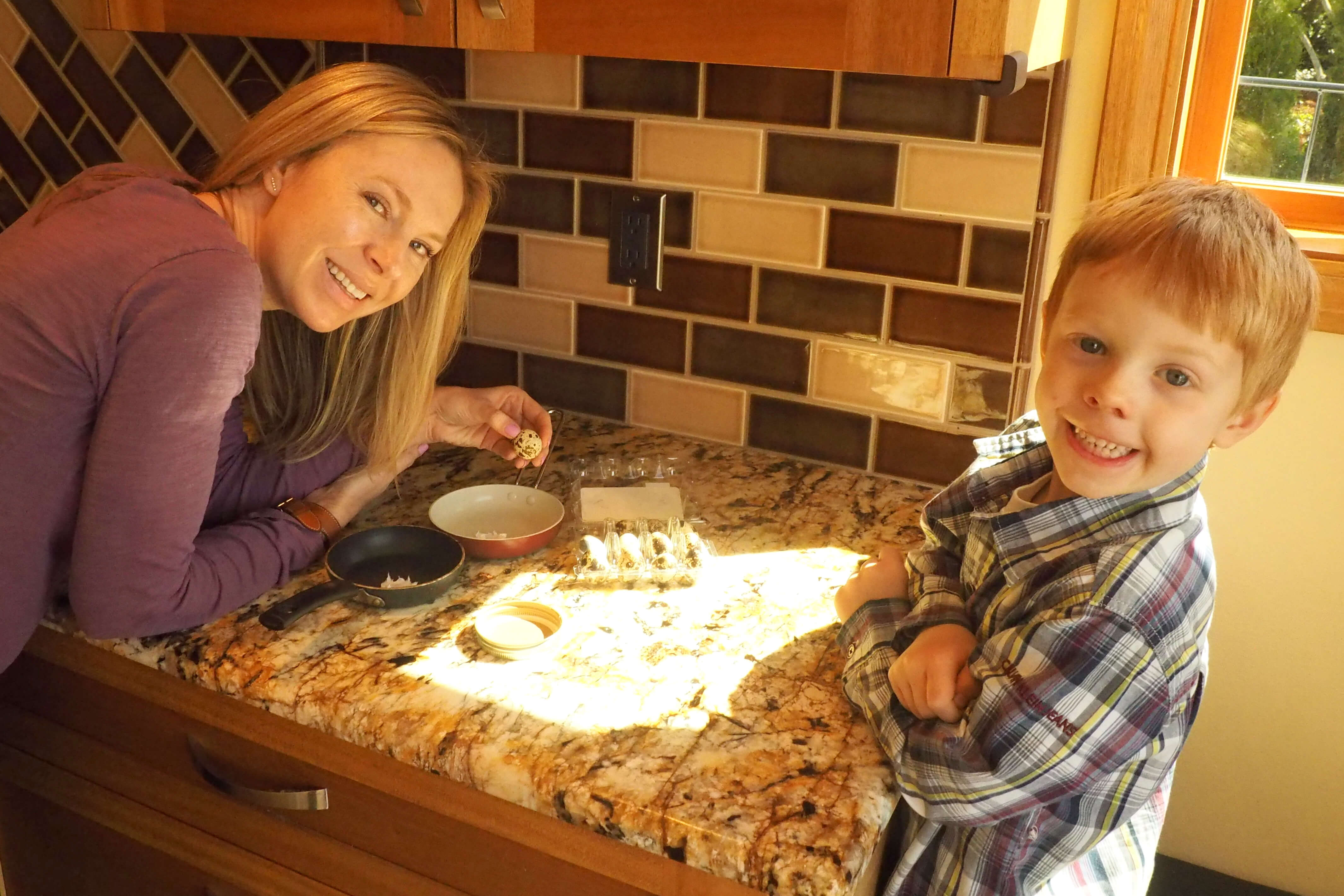 Later in the day we enjoyed a mostly nutritious Easter meal of quiche (two kinds – feta/kale and scallion/gouda) and roasted veggies (cauliflower and asparagus). My Dad brought traditional Hot Cross Buns and lime-soaked polenta for dessert. It was a joy to enjoy quality time with the family, including my parents, brother and sister-in-law. My folks even watched the kids so Chris and I could get a rare date night last night; we so rarely get a night with just each other that it was a real treat.  I hope you’re having a wonderful Easter weekend with your family as well.