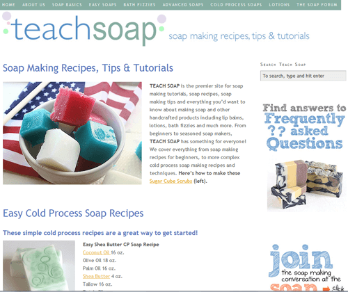 Teach Soap Makeover – TeachSoap.com, the free instructional site that I started at the same time I started Bramble Berry, has so many great recipes and resources (including a forum) but it was drowning in outdated design. We completely redesigned the site this year for a fresh, clean look. All the same great information is there but with a perky new design and a much more robust search option.