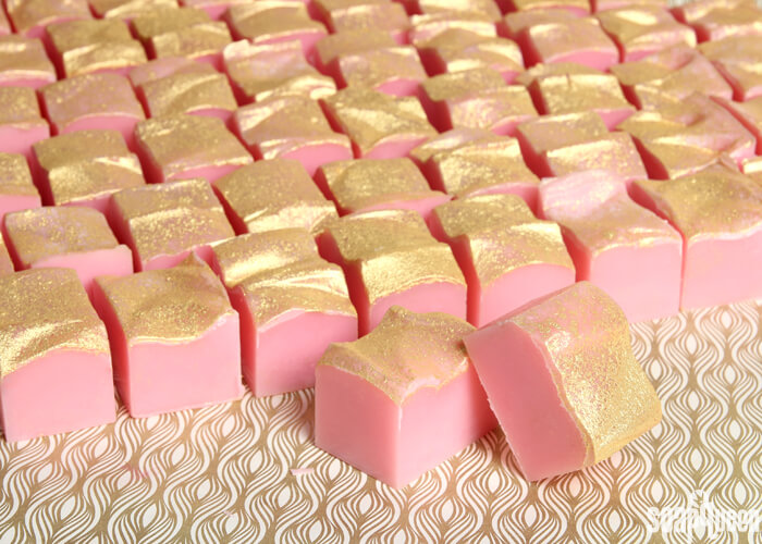 If you have a lot of gifts to give, the Cold Process Soap Wedding Favor Tutorial shows you how to make 72 guest-sized bars in one batch. Switch out the pink colorant for red or green for a festive look. Bundle several bars in a gift bag, or give each bar individually. These little bars make great stocking stuffers or gifts for a teacher, doctor, or mail carrier.