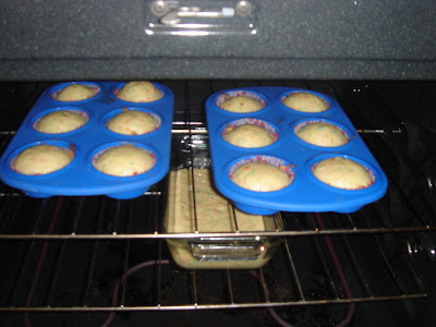 The ideal way to make multi-layered cupcakes is to have a cupcake tin sized smaller than the base cupcake. Having no such 2nd cupcake tin, I improvised. I poured a flat sheet cake to cut baby cupcakes out of. When they are frosted, no one will know that they weren’t real cupcakes.