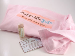 Thanks Carrie-Gigi at Mud Puddle Girl for sending me a fabulous goody pack! Carrie-Gigi has showered me with gifts before (click here to read about her fun billows) and this time, she’s sharing her Soap-Queen inspired chocolate lip balm. Back in September, Carrie-Gigi wrote me to share the good news about her new product line: Muddle Puddle Girl. She said: