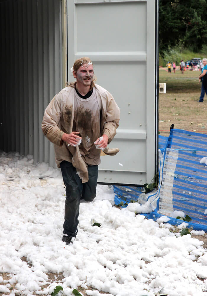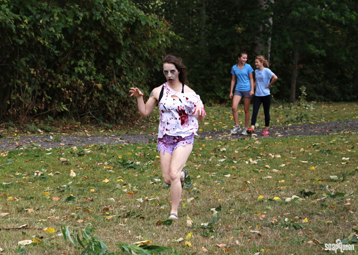 Ben, who works in the warehouse, took this stunning photo of Carla making her way through the race. We loved the way this photo looked so much that we printed and framed the photo as a present to Carla. She worked so hard to coordinate the Bramble Berry team for this event, and came up with the awesome zombie costume idea. Thanks for all you do Carla!