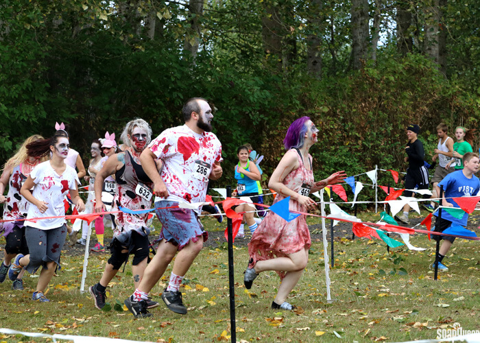 Below, (left to right) Joe, Jorge, Rachel and George start the race off! It was so funny to watch the team of Washing Dead zombies run among the non-zombie racers. At times, it looked like a zombie movie in the making.