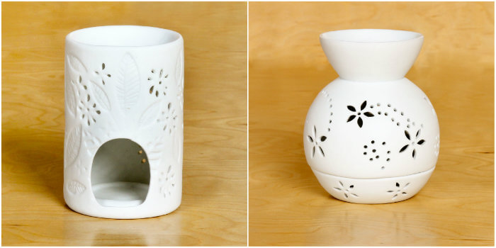Left to right: White Leaves Tealight Warmer, Spiral Flowers Tealight Warmer
