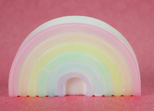 The tropical colors scheme just screamed to be used in the Soapylove Rainbow Mold! They’re super cute in solid colors or you can get creative and lightly color each individual rainbow stripe. The island inspired soap colorants are dyes that are specifically designed to be bright, happy and easy to use in melt and pour soap. Enjoy blending Aloha Yellow, Purple Paradise and Orchid Pink in your tropical creations. Now, I know what you’re thinking, dyes usually bleed in melt and pour soap. You are correct. In the soap above, we used such a tiny amount of the colorant that it didn’t bleed (and still hasn’t bled after two weeks- score!) . Keep your eyes peeled for a tutorial to come on the delightful rainbow soap above!