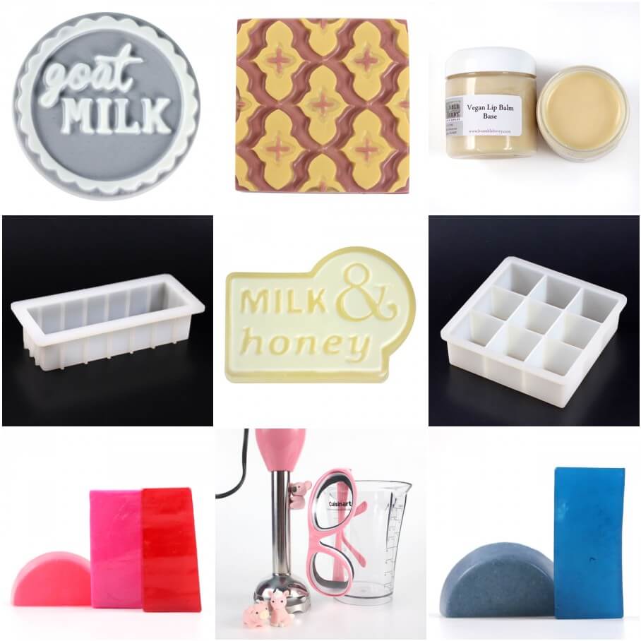Row 1: Goat Milk Mold, Moroccan Tile Mold, Vegan Lip Balm Base