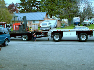 We purchased a used forklift for our warehouse. We’ve always had this weird hybrid forklift pallet jack and “Pinky” (so-called because an employee spray painted it pink) finally quit working. Getting a forklift off a flat bed truck is a challenge, especially when it has a dead battery and cannot be driven. We had to call a tow truck to pull the forklift off the flat bed truck. Of course this had to happen when every single guy had gone home for the day and there was no one there but two girls. Of course, we’re two strong, smart and wily girls, but non-males all the same.