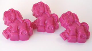 Thanks! Those little Ponies were done with Fuscia Labcolor and 90% clear melt and pour mixed with just a little bit (10%) of white melt and pour.