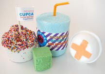 This is what I ordered: 1 Bath Milkshake, 2 Cupcakes, 2 Bath Fizzies, 1 Solid Bath Melts, 4 Bath Frappes. Everything is brightly colored and attractively packaged. Despite the fact that it’s summer and there is no Air Conditioning at my house, I’m still excited to go home and take a hot bath, just for an excuse to use these bath delights!