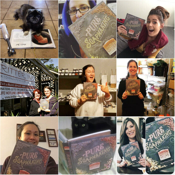 If you have received your book, there is still time to enter the #PureSoapmaking contest on Instagram and Twitter to win one of ten $25 Bramble Berry gift certificates! Simply post a selfie with the book and use the hashtag #PureSoapmaking. Contest ends Wednesday, February 15th. If you’re feeling shy, feel free to post a photo of the book in a creative way. Check out some of the adorable selfies below; even furry friends are getting in on the fun. =)