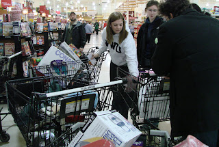 With 17 people on our list, we had quite a few full carts but thanks to Amber’s extreme organization, the shopping was done in record time – two hours. The sorting of the gifts to deliver to the Salvation Army took a bit longer. There were a lot of bags filled with gifts.