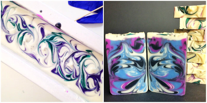 This month I’m spreading my soapy wings and practicing the Butterfly Hanger Swirl for the Soap Challenge Club hosted by Amy of Great Cakes Soapworks. I’m thrilled with how it turned out, and can’t wait to try this technique again.