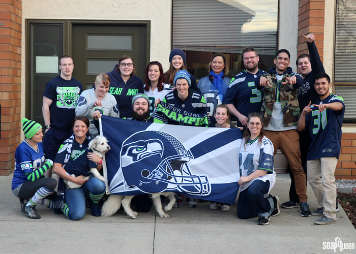 Today we did a STEM (science, technology, engineering and math) activity day and of course, are in the midst of prepping for the Super Bowl tomorrow. Do you have fun Super Bowl plans? Jamisen is starting to pay attention to the sport, while Lily simply enjoys wearing her Seahawks gear. I picked up some cute Seahawks cookies from a local bakery to celebrate and those are sure to be a huge hit. On Friday, some of the Bramble Berry team showed their support with plenty of blue and green; go Hawks!