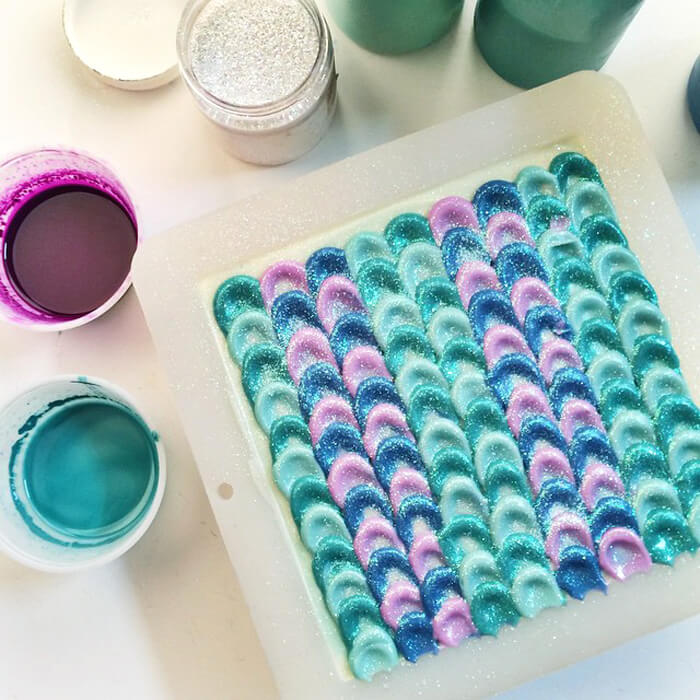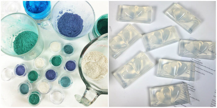 mermaidSpeaking of mermaids, I had fun mixing up mermaid inspired eye shadow this week (left). On the right are melt and pour bars made from scratch using Kayla Fiorvanti’s book, “How to Make Melt and Pour Base From Scratch.” It was a fun, interesting process.