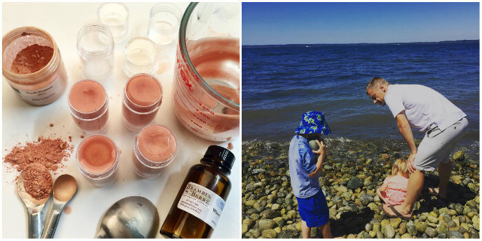On the left is a lip balm made with beautiful Peach Shimmer Mica. I love the soft shimmer it gives! On the right, the family and I took a walk down to the ocean. The weather has been so wonderful!