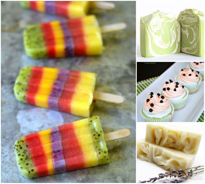 - I love the layers and bright colors in these Whole Fruit Popsicles. These colors would look great in soap!