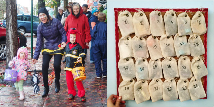 On the left, the kiddos and I enjoyed an evening of trick-or-treating. The rain couldn’t keep us inside! Speaking of holidays…the countdown to Christmas has begun. The tutorial for this advent calendar will be on the blog soon.