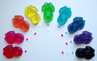 Debbie made these fun colors from the SoapyLove line of Jewelry Box Colors. You can see from the fun little ‘flies’ in front of the frogs what colors she used for blending.