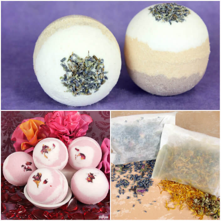 Did you know it was easy and inexpensive to make your own bath fizzies? It is! Here are some perfect spring tutorials just for you. Dried flowers are also the perfect addition to bath bombs and teas. In the Lavender & Clay Mondo Bath Fizzy, dried lavender and lavender essential oil create a calming bath experience. Looking for a tropical getaway? The Pikake Flower Bath Bombs smell of traditional Hawaiian leis. Fresh herbs infused with essential oils add scent and moisture in the Mother’s Day Bath Tea Tutorial.